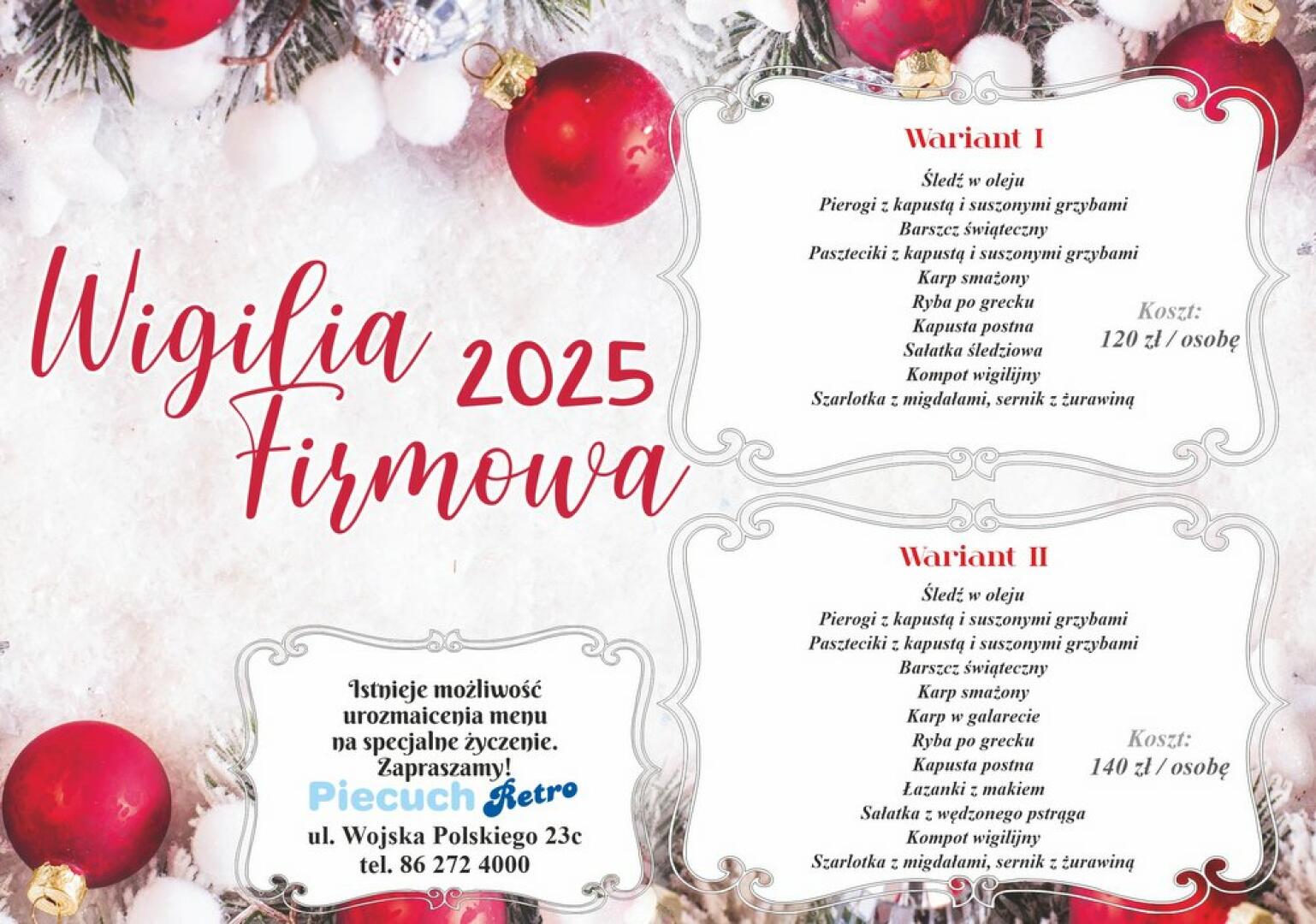 Grajewo ogłoszenia: Potrawy wigilijne Piecuch Retro!