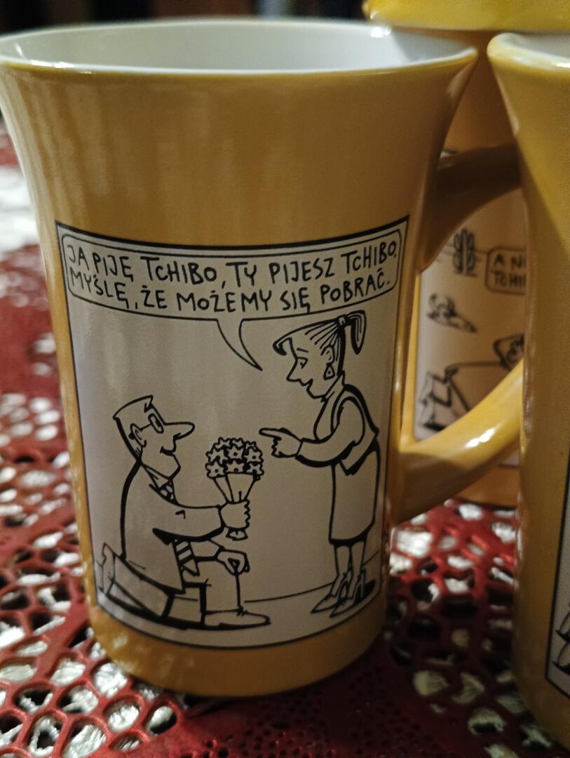 Dla fanów kawy Tchibo Family , kubek kolekcjonerski z rysunkiem Andrzeja Mleczki, unikat .