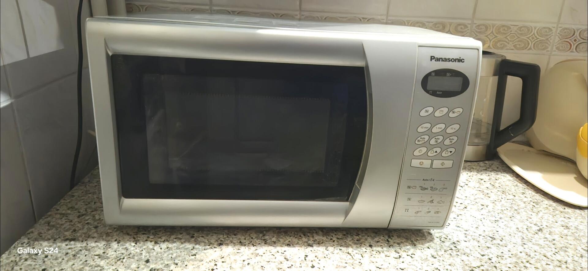 Sprzedam kuchenkę mikrofalową Panasonic srebrna bez pudełka i papierów. Posiada panel dotykowy duża moc 800w 5 poziomów mocy , talerz obrotowy. Odbiór osobisty